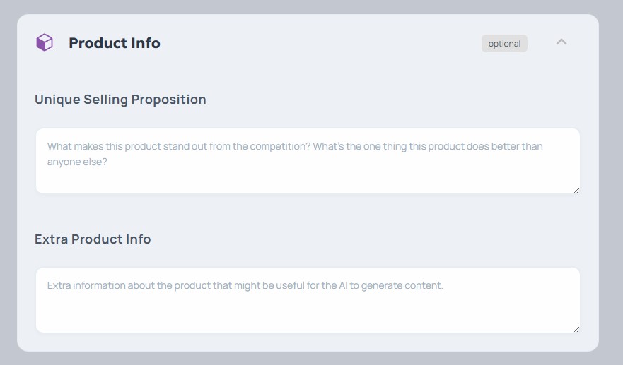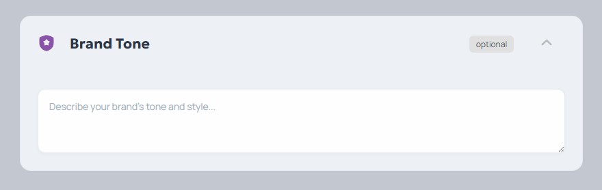 Use this field to describe your brand’s unique tone and writing style. Whether your brand voice is bold and edgy, warm and conversational, professional and trustworthy, or playful and fun—this description helps the AI stay consistent with your brand identity across all content.